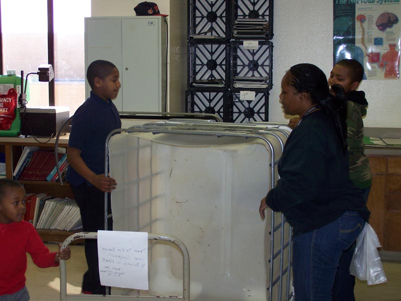 | Image Description: | All the students and even teacher's young ones are excited and want to help. |