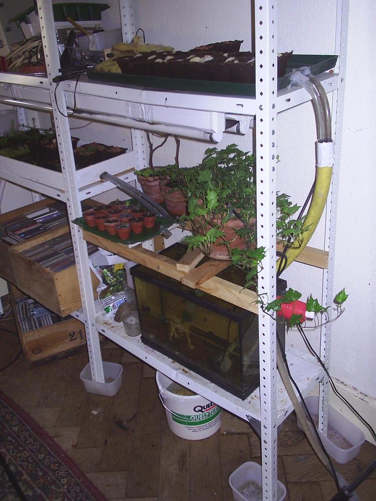 File comment: General view: Floor 1 for baby guppies, floor 2 for liere, cactii & probably dead fig trees (they spent their winter outside). Floor 3 is the germinating floor.