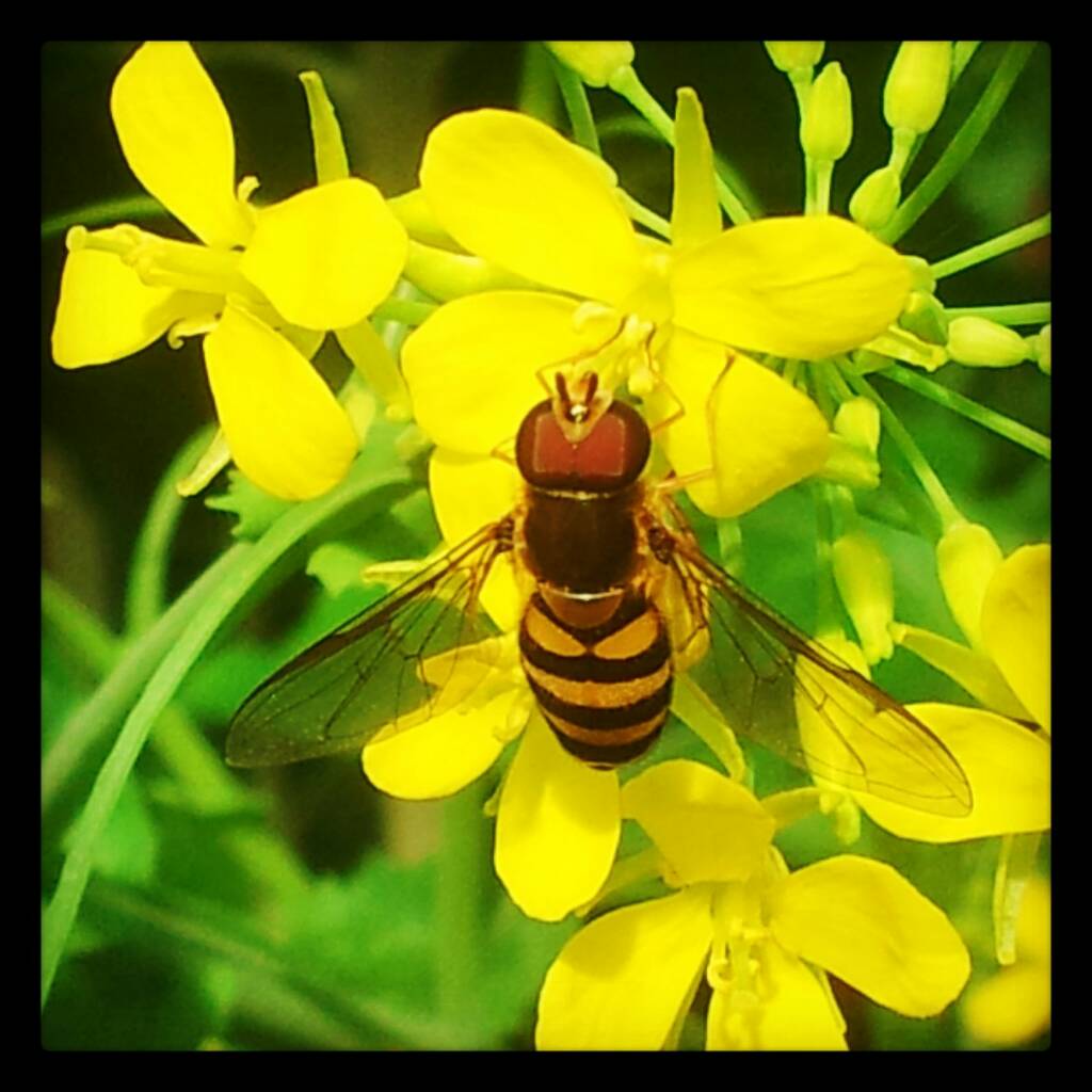 Watched a hoverfly that was almost as big as a bee, the largest I have ever seen. Hopefully it will lay some eggs as their larvae, though very small are great parasites.