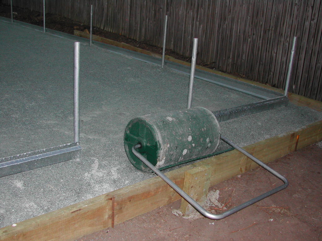 Here are 2 pics of the crusherdust floor after it has been watered in and rolled. Feel very solid