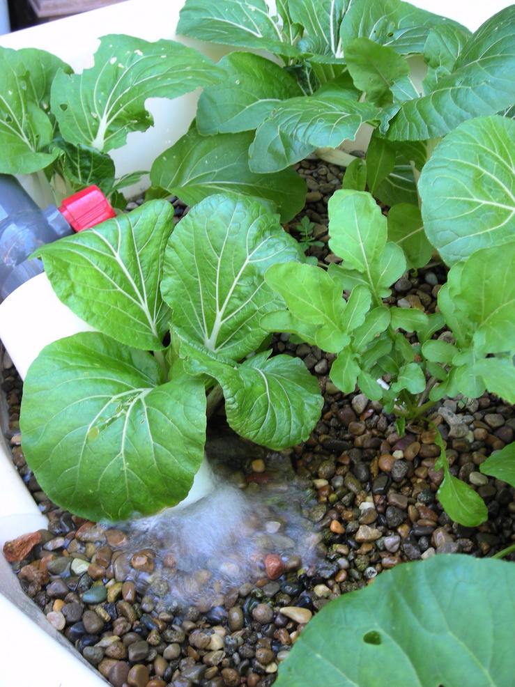 I discovered that there are quite a lot of roots at the bottom of each standpipe. I don't know what from. When I pulled out a whole Pak Choy, the roots are only ~10cm long. The gravel is ~40cm deep! :shrug:
