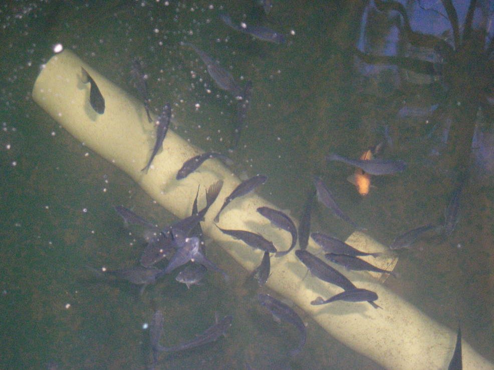 File comment: Happy little fishies! (SP and a few comets.) PVC pipe is 90mm diameter.