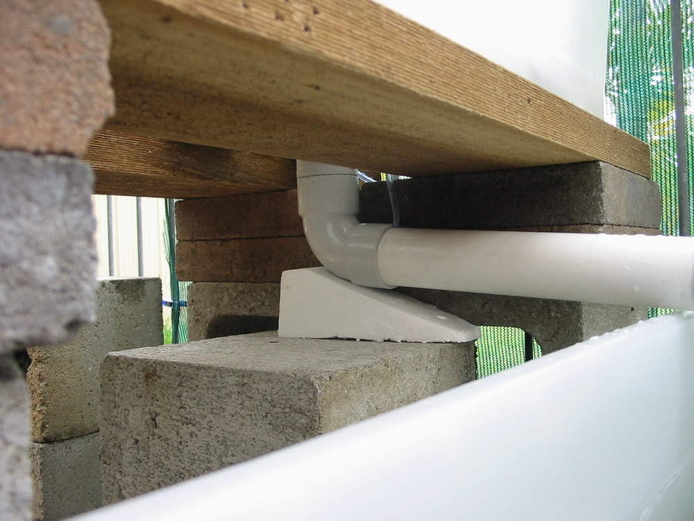 the 40mm drain pipe has a slight modification, Silastic has been added to the pillars, this is to make sure the siphon pipe does not move against the drain pipe and restrict water flow – I did not see this happen but not sure that it won’t (preventative modifications); and