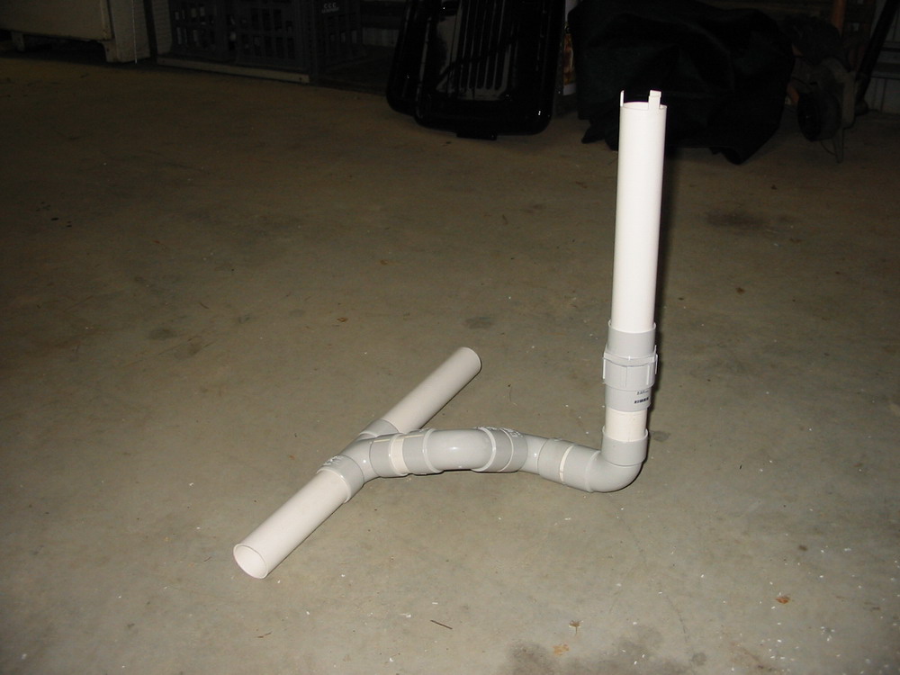 grabbed a few pieces and shoved them together, 3 elbows and a "T", one end of the horizontal pipe goes to the fish tank, the other connects to another grow bed.