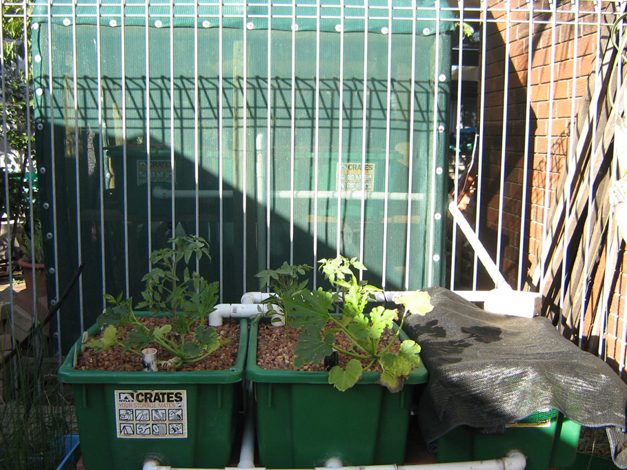 I finished moving an setting up my system a few days ago. System consists of 9, 55L containers. 3 Growbeds, 5 Fish tanks and 1 sump. The fish tanks are set up inside a very simple shade house, 1. To reduce heat and 2. To minimise dust and debris from Easterly winds. (Perth people know what I mean).