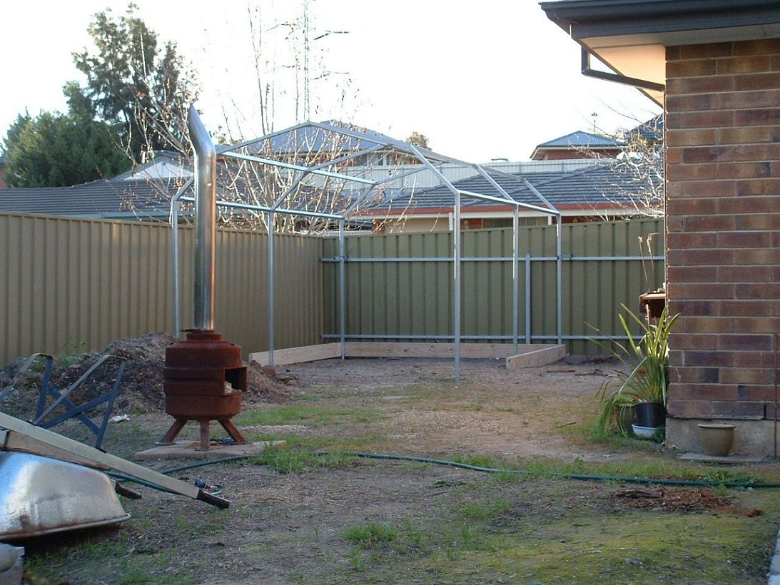 The following photo is of the new Greenhouse, he is the brains and i am the slave.