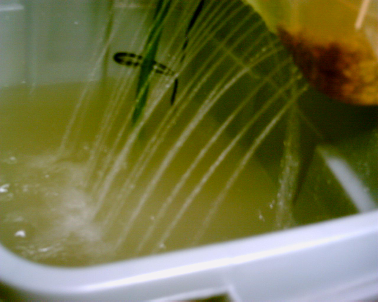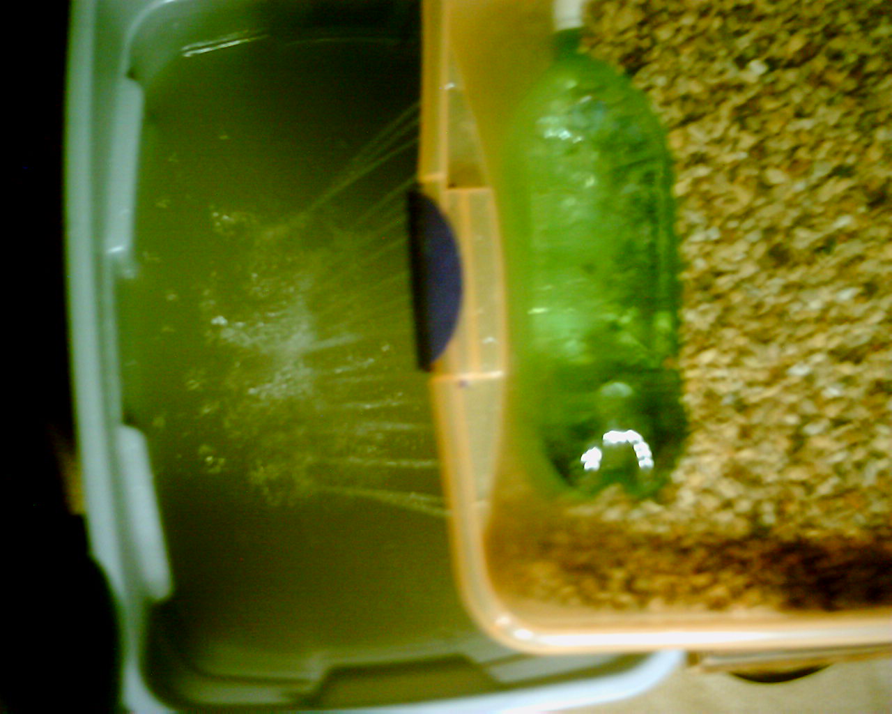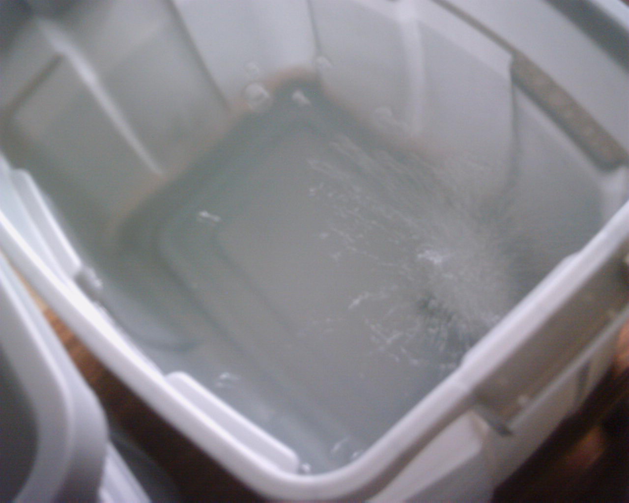 I plan on bubbling this water, which should be more than enough, for about a week to remove chlorine. This will give me some time to observe how the bins deal with the bulging, as well as come-up with some ideas as to how to really proceed. I'm planning on using pea-gravel loaded to the current water level.