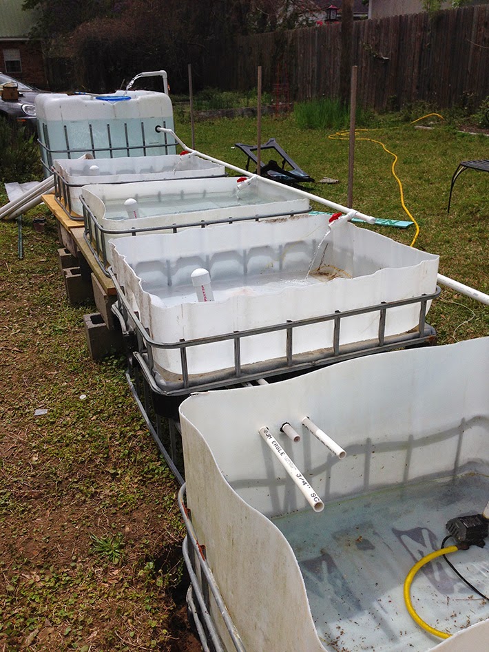 Hello, I'm setting up my first system. I have a 275 gallon IBC tote for my fish tank, 3 IBC grow beds and 2/3 of an IBC as a sump tank. From the sump tank, I have 1" PVC running to my fish tank and I have 3/4" PVC returning water to my grow beds and sump tank. The pump I'm using is an Active Aqua 1000 GPH pump.