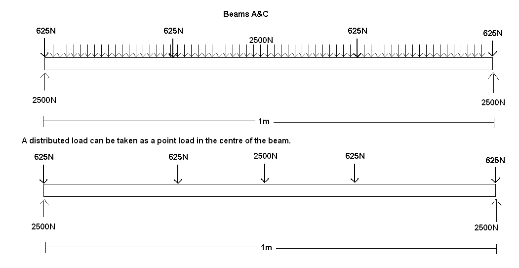 as an evenly distributed load, can I say there is 8m of RHS, so the load is distributed 125kg/m?